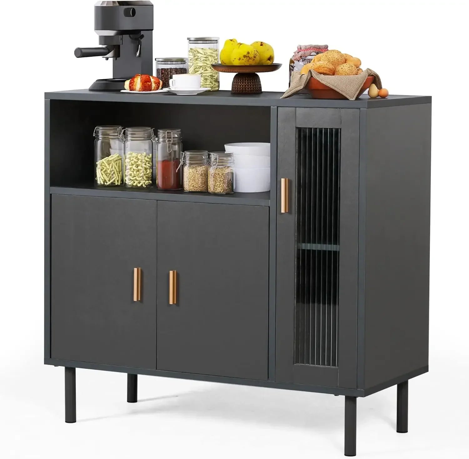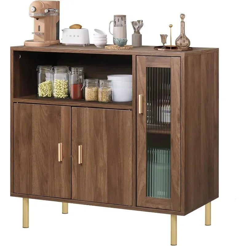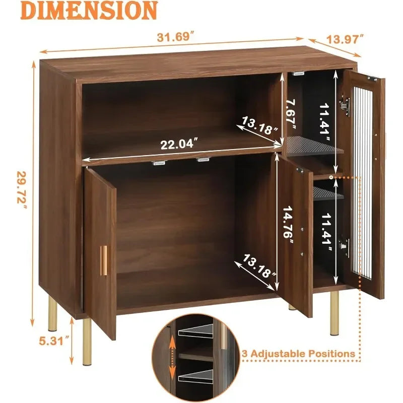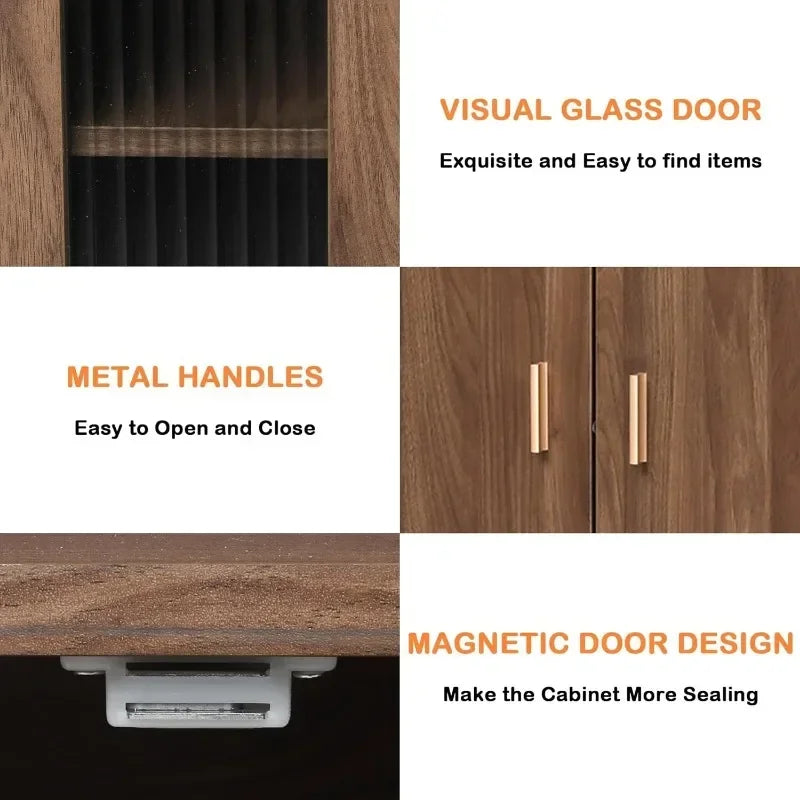 Glass Door Storage Cabinet - Modern Buffet Sideboard