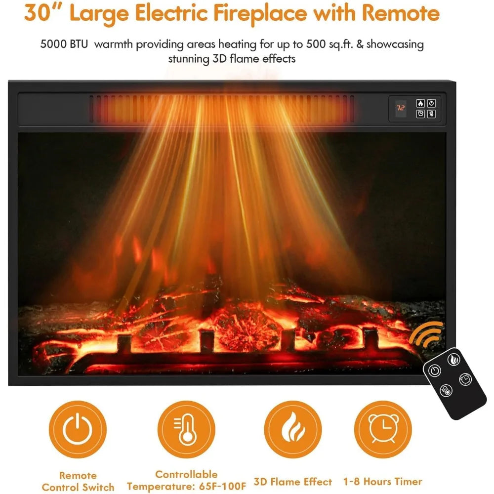 • Immersive 3D fireplace with customizable heat and fire effects (65-95°F)