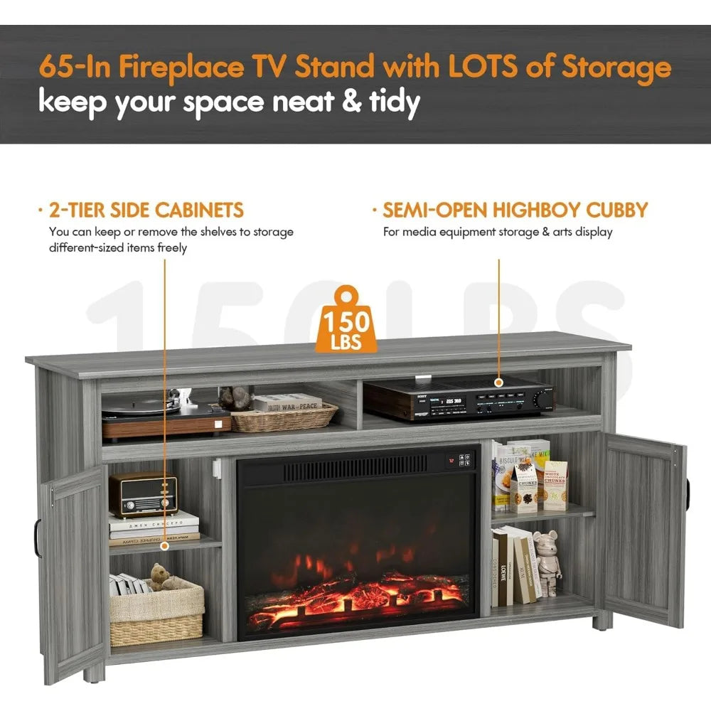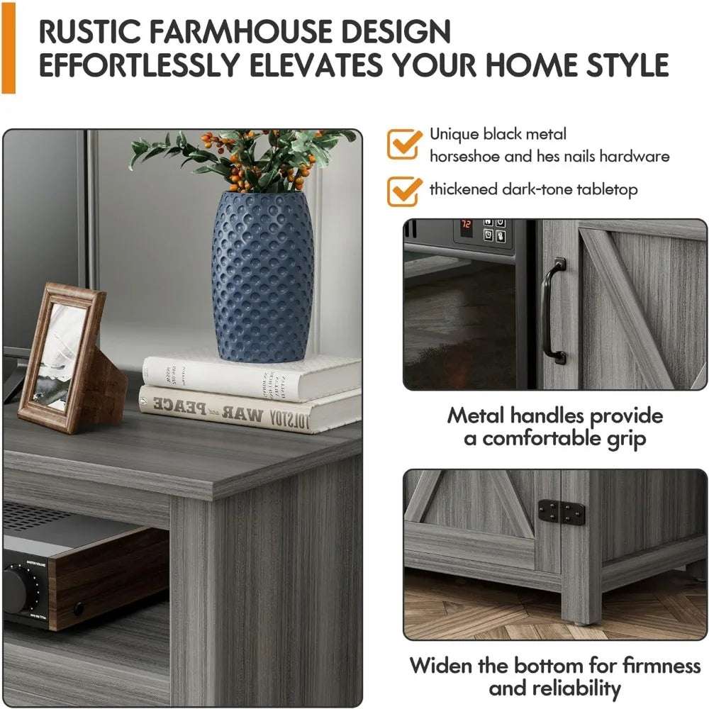 This Fireplace TV Stand blends modern design with rustic charm. Designed to fit up to 65" TVs, it offers both functionality and aesthetics with a 3D fireplace feature. Enjoy warmth or ambiance with customizable fire effects, perfect for year-round comfort. With ample storage space for electronics and decor, this TV stand is the ultimate addition to your living room or entertainment area.