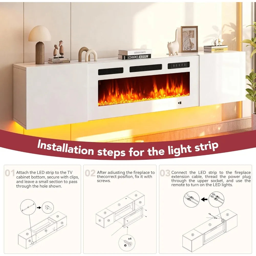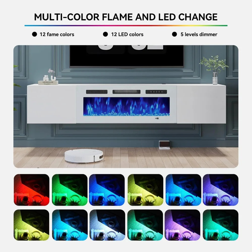 70'' Floating TV Stand with 36" Electric Fireplace - Wall Mounted