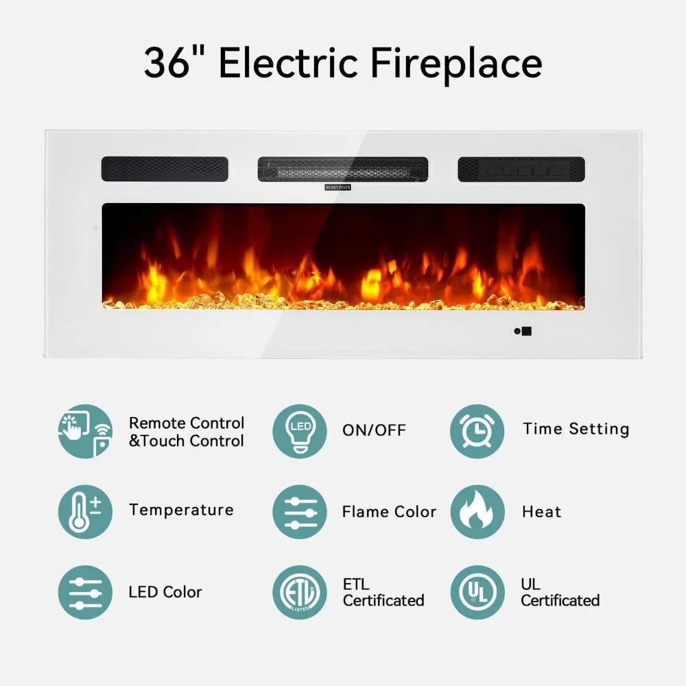 • 36" electric fireplace with 12 color backlight options and temperature control