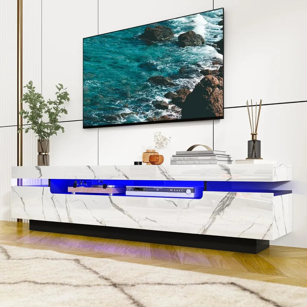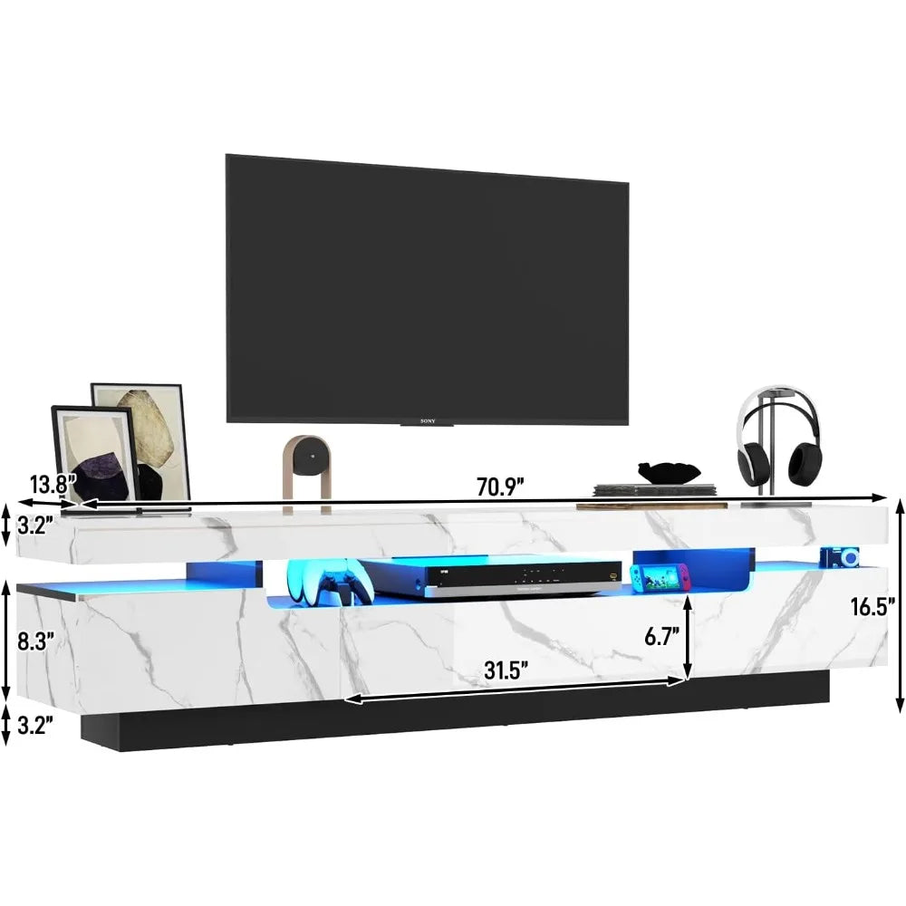 70" White LED TV Stand Modern High Gloss Fits 75/80" TVs