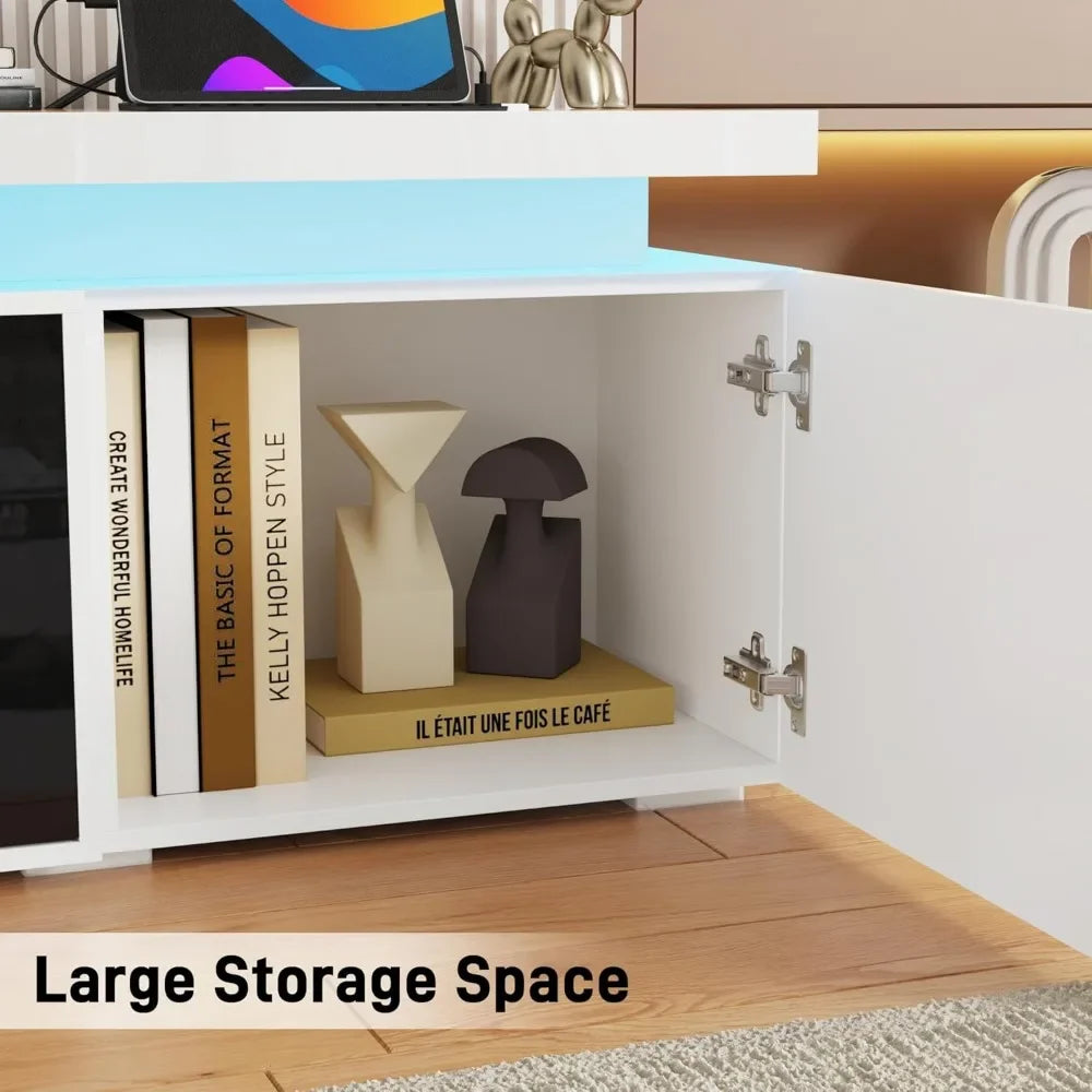 Modern TV Stand with Built-In Electric Fireplace and LED Lights