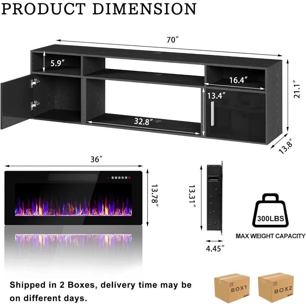 70" Floating Wall TV Stand with 36" Electric Fireplace