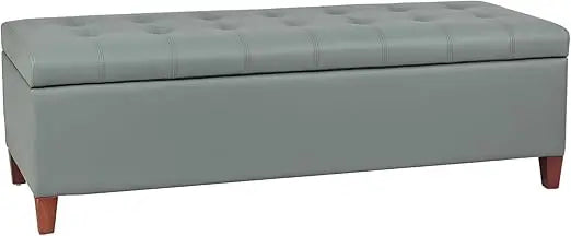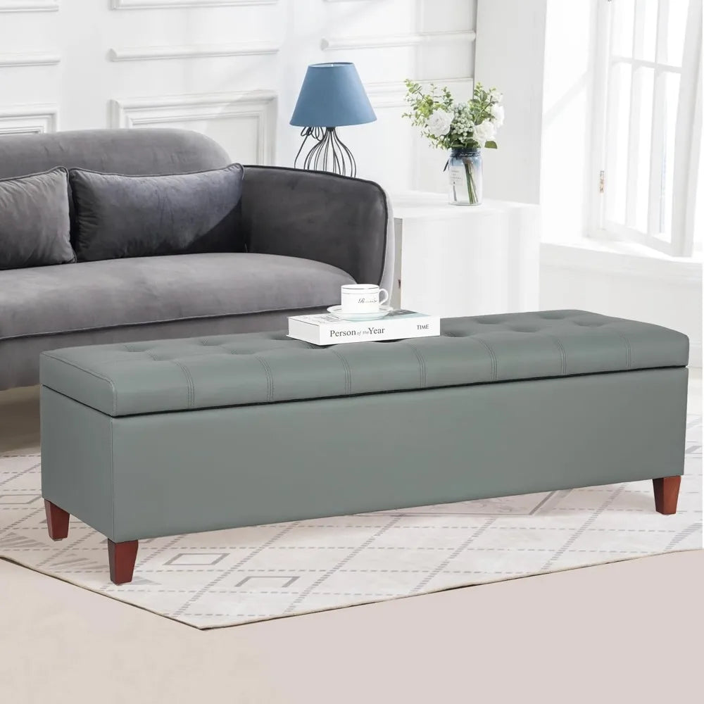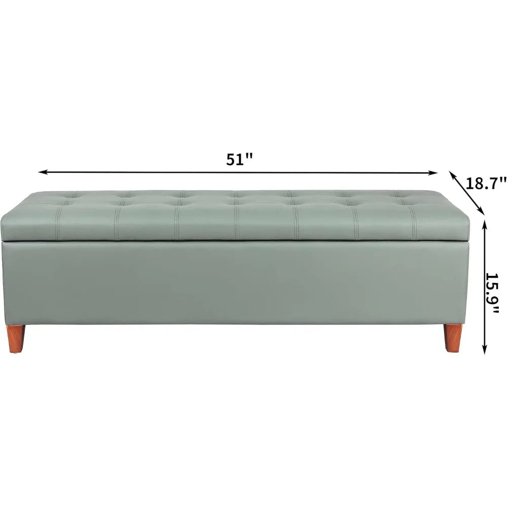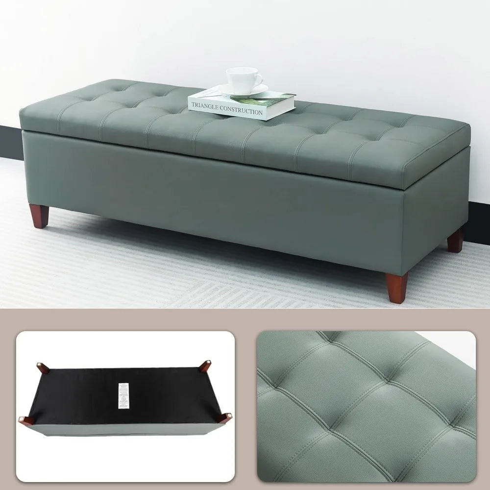 Gray Green 51" Ottoman Bench – Tufted Leather Storage with Wood Legs